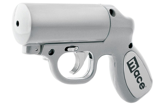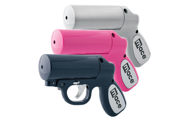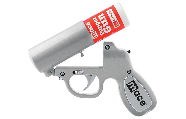 Mace is now offering a less-lethal device called the Pepper Gun. The unit works similar to a pistol and even includes an LED white light. The unit ships with a canister of pepper spray and an inert training unit. Black, silver and pink models are available.