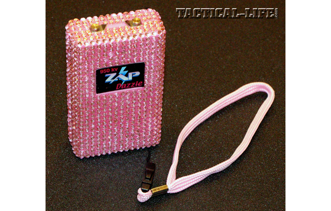 Personal Security Products has also introduced the Zap Dazzle stun gun for 2014. The Zap Dazzle is a 950,000-volt contact stun gun that has a bejeweled pink or black exterior. The exterior is easy to grip and the fashion aspect makes its true use less obvious to the casual observer.