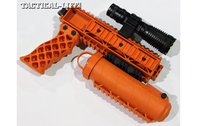 The Pro-Defense Defender is a new pepper spray less-lethal tool that has the appearance of a tactical firearm. The Defender is gun shaped, with Picatinny rails for adding a white light and/or laser-aiming device. Additionally, the Defender has an attachment for a single-point sling.