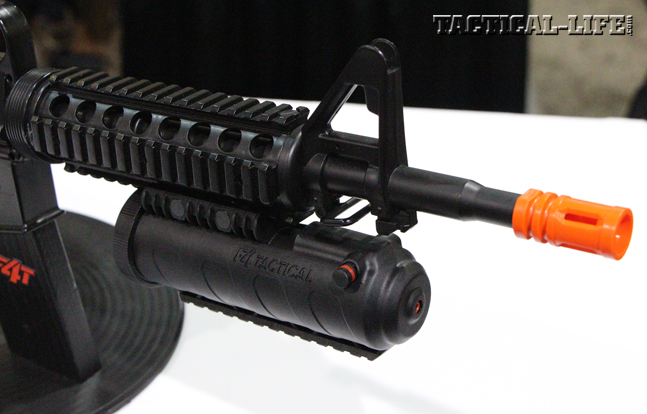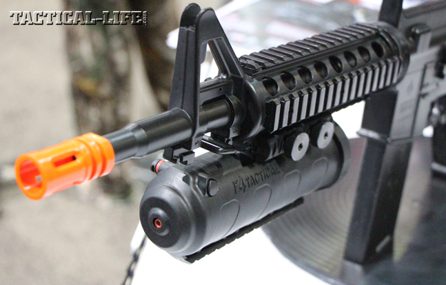 Pro-Defense has introduced a rail-mounted OC (oleoresin capsicum) or pepper spray unit called the F4 Tactical. The F4 Tactical mounts to the Picatinny rail of a rifle and allows a person to quickly use less-lethal force when appropriate. The F4 Tactical has a 20-foot range.