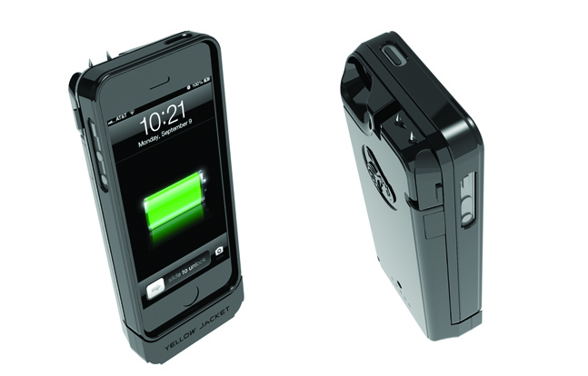 Having a stun gun immediately available for self-defense is the purpose of the Yellow Jacket. This device combines personal protection with a phone case. Models are available for the iPhone 4/4s and iPhone 5/5s. MSRP is $99 and $149 respectively.