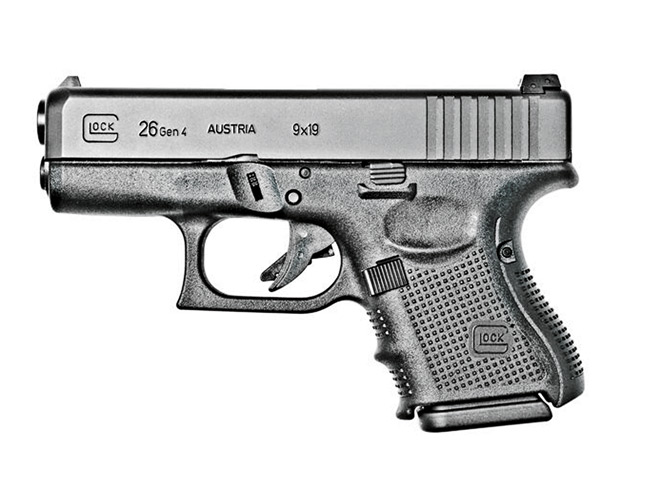 Among the most popular of the concealed-carry GLOCK subcompacts is the 9×19 Glock 26 Gen4, which offers a 10-round magazine capacity along with the smallest frame and slide dimensions available for a 9×19 GLOCK. The Glock 26 was the first subcompact in the line, introduced in 1995, and remains, in its latest form, one of the easiest subcompacts to shoot, as the new Gen4 model uses GLOCK’s improved dual recoil spring assembly to further regulate felt recoil. The 9×19 is and has always been the first choice, initially for law enforcement and military, and certainly today for the civilian market.