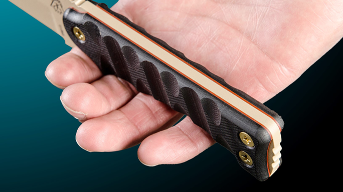 The Coyote Tan powder coat protects the steel from the elements and reduces shine so your adversaries won’t see you coming. Strong and sturdy black G10 handles with TOPS’ Rocky Mountain Tread allow for a solid grip in almost any condition.