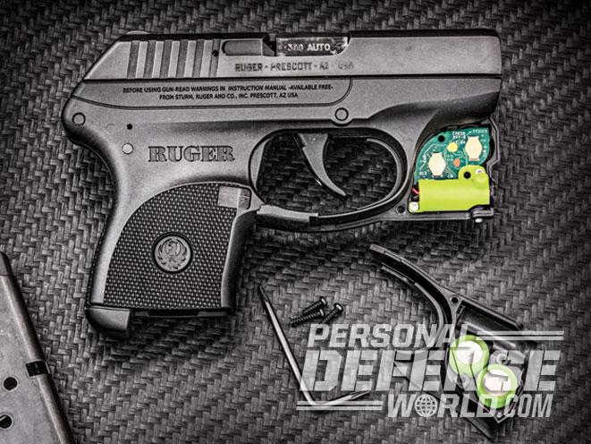 What made the LCP popular was the simplicity of its design, ease of use and natural balance in the hand, but that came at a cost. With the very low, rounded sights integrated into the flat, blue, alloy steel slide, the LCP lacked any capability for upgrading to white-dot sights, and its small size and construction eliminated the possibility of adding a laser grip. This was finally addressed by Crimson Trace with the Laserguard, and then in 2012 by LaserMax with a similar triggerguard-mounted red laser sighting system, both available today from Ruger as part of an LCP package. Problem solved, with one small exception: A red laser has limited effectiveness in daylight or brightly illuminated rooms. What the LCP needed was a green laser, a virtual impossibility until Viridian took the next step.