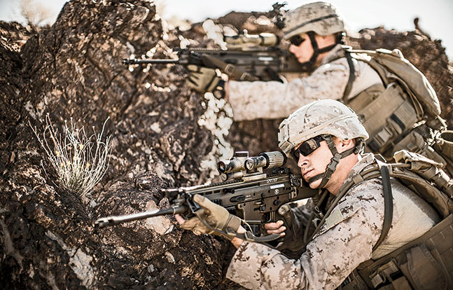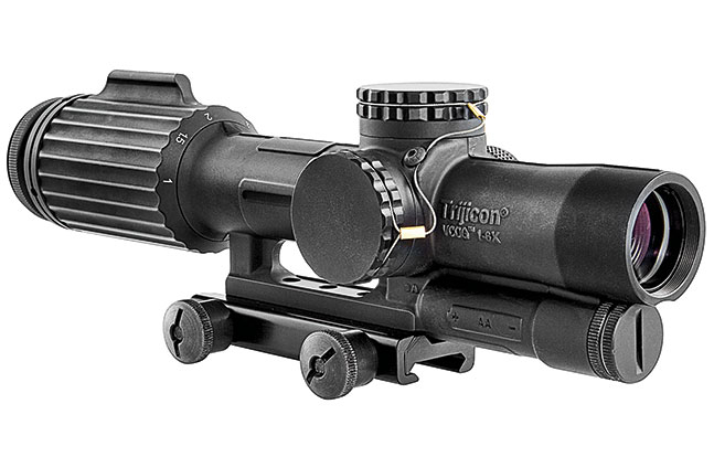 Trijicon ACOG scopes remain a favorite among U.S. soldiers these days. Most in service are fixed 3.5X ACOGs with reticles providing bullet-drop-compensating (BDC) lines and simple aiming points that are illuminated via tritium and/or sunlight, making them easy to see in just about any lighting condition.