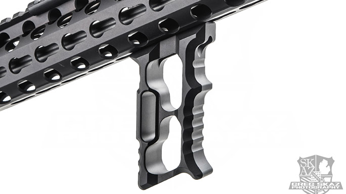 “This concept took months of designing and field testing to make it as comfortable as possible while maintaining our well known aggressive styling,” the company said in a statement. “It truly is a vertical grip that can be used in all situations on various platforms to heighten the performance of the operator. We are pleased with how it came out and look forward to seeing it on AR’s everywhere.”
