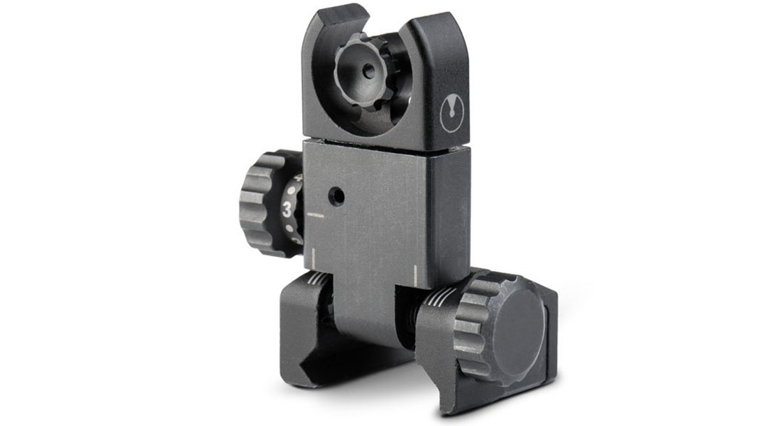 The rear sight features two insert sizes, with one stored in the elevation knob. The front sight includes a 10 MOA globe sight. 8 MOA, 12 MOA, 14 MOA and blade posts are available, Ultradyne says.