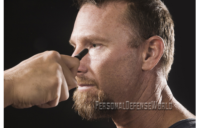 The Index-Finger Grip: This translates the action of poking with your index finger into a fast, accurate strike with the pen’s tip. To assume this grip, brace the cap end of the pen against your palm and extend your index finger along the pen’s body, using your thumb and remaining fingers to hold the pen in place. In this position, simply “poke” with your index finger to guide the tip of the pen to the target. This grip works best when used to target the eyes, throat and other small, sensitive targets that require extreme accuracy and speed. Although less versatile than the other grips because the pen is braced against the palm, it is surprisingly powerful.