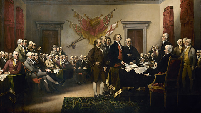 By capturing valuable supplies from the enemy, forging some of their own weaponry and gaining the French as an ally, the Continental Army was able to repel many attacks and score key victories. After signing the Declaration of Independence on July 4, 1776, the colonial revolutionaries were no longer colonists, but now Americans in an official United States. At this time, Washington’s army had roughly 20,000 men, including the militias. The Continental Army, now united under 13 states, continued to muster its forces and gained major victories in Trenton and Princeton, New Jersey, and then in Saratoga, New York. As the war ventured south, the Continental Army and French allies finally defeated the British at Yorktown, Virginia on October 19, 1781. Soon after, the British realized they no longer had any chance of achieving a victory and signed the Treaty of Paris on September 3, 1783, officially ending the war.
