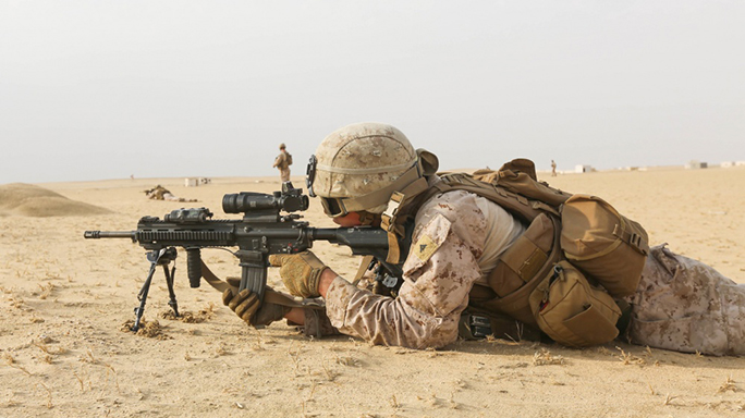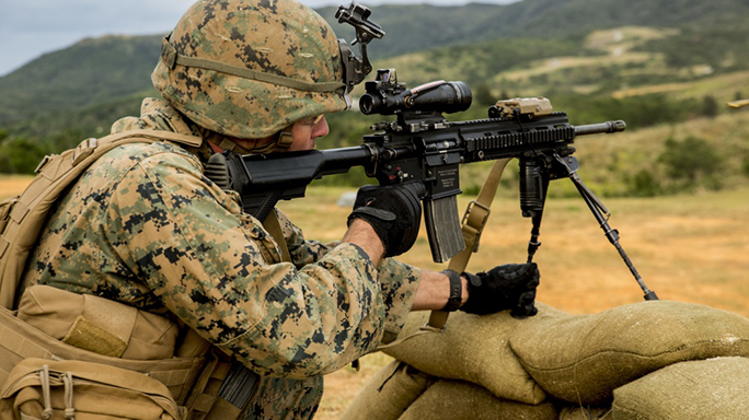 According to Soldier Systems, the Corps wants to capitalize on the long range of the M27 — adopted in 2011 and based on the Heckler & Koch HK 416 5.56mm — by equipping an as-yet undetermined amount of M27s with 3-9x optics for use as a Squad Designated Marksman Rifle (SDM-R) beginning in Fiscal Year 2018, with fielding expected to be completed by Fiscal Year 2019. Chris Woodbury, Deputy for the Maneuver Branch of the Marine Corps Capabilities Development Directorate, dropped that particular nugget of information.