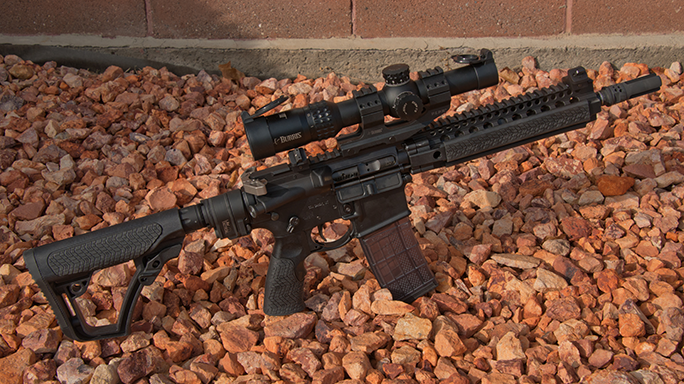 All internals, including the M16-profile bolt carrier, are mil-spec, magnetic particle (MP) tested, chrome lined and properly staked. Daniel Defense’s patented grip, stock and Santoprene rail panels are included to keep things comfortable under harsh conditions.