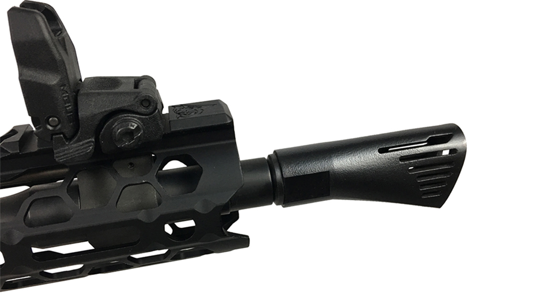 If you really want to see the NERO 556 stretch its legs, check out the video below. It shows the muzzle brake in full-auto action with an SBR, depicting one-handed operation; first-person view through an EOTech optic; and multiple mag dumps.