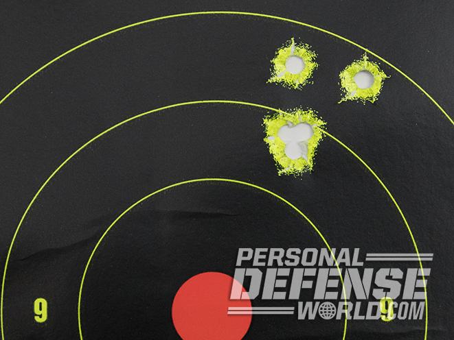 To start my range time with this gun, I put 150 rounds of Sig Sauer’s 115-grain FMJ practice load through the pistol to warm it up and see where I was hitting. After another 150 rounds of 124-grain ball ammo, I then got to testing the pistol with all kinds of personal-defense ammunition.