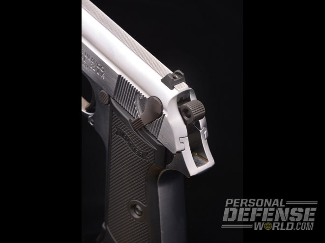 The new PPK/S’ sights are a notable improvement. A single Allen-head screw that can be loosened for windage adjustments locks the dovetailed rear sight. The front sight is vertically pinned and can be replaced with one of two extra sights included with the gun, along with the necessary tools, allowing a user to really fine tune the PPK/S for accuracy.
