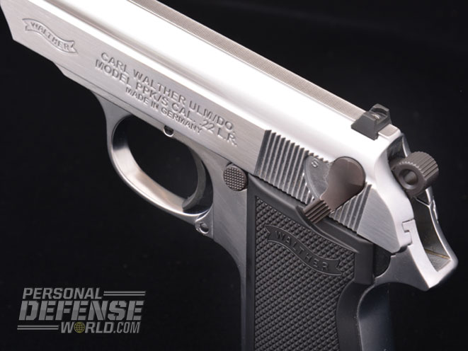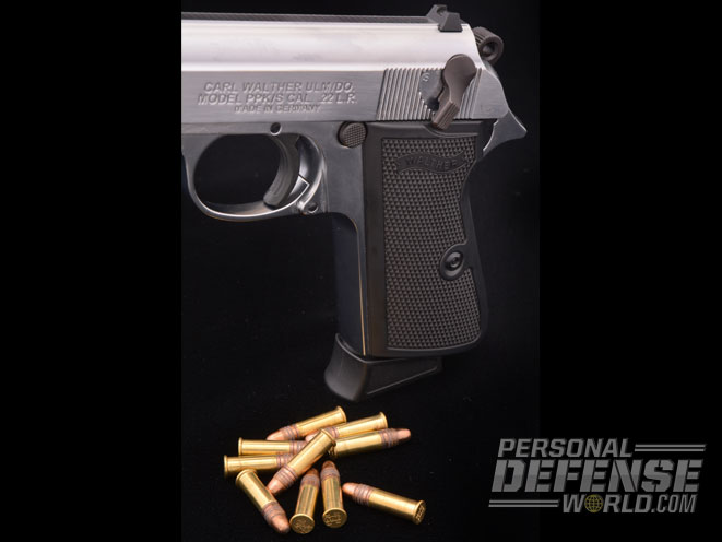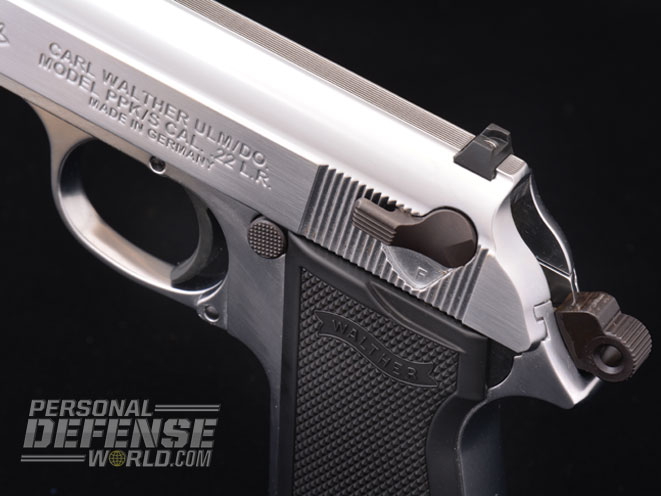 Though larger than the PP model, the PPK/S remains a comparatively compact pistol, just a little leggy in the grips for some concealed-carry users, if one were to carry a .22 LR. The point of building a new .22-caliber PPK/S (especially for Walther) parallels the current trend to manufacture exact duplicates of larger-caliber guns, allowing users to become completely familiarized with the firearm’s handling and operations at a significantly reduced ammunition cost. Everything else remains the same, only the recoil has been changed to protect your pocketbook. A .22 is also an excellent option for those who have difficulty handling more powerful handguns but still want a pistol for home protection, or just a .22 for target shooting and plinking. The PPK/S is more than adequate for these tasks.
