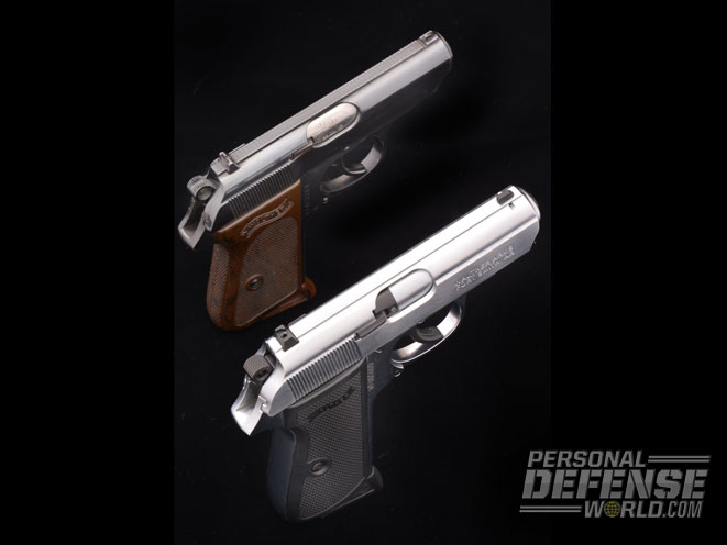 After the war, Walther had to rebuild itself, and by 1950 was on the way to getting back into worldwide production, with the PP and PPK topping the list in .32 ACP, .380 ACP and .22 LR chamberings. Featuring a fixed barrel and a low bore axis, the guns used a simple blowback action and innovative (for a semi-auto in 1930) double-action/single-action (DA/SA) trigger design.