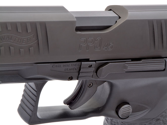 The PPQ’s polymer frame (evolved from the benchmark, striker-fired P99) lent itself to changes that allowed Walther to vary its fundamental operation while developing the original PPQ (introduced in 2011) and improved PPQ M2 designs. By adding .45 ACP to the M2’s caliber options, Walther is now up against some pretty heady European competition from Sig Sauer, Heckler & Koch, FN, Beretta and Glock, not to mention Colt and all the various American manufacturers in the high-quality .45 ACP semi-auto field. But if any one arms maker can stand out in a crowd, it’s Walther.
