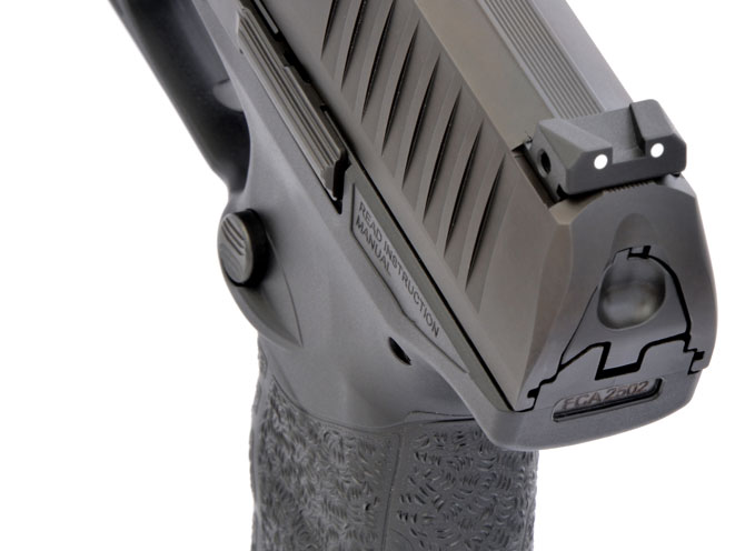 According to Walther, people feel more comfortable with a traditional grip-mounted magazine release despite the proven effectiveness of the P99’s design. For many, this was considered a backward step with the M2. Differing opinions aside (I still favor the P99 design), the large button-style release has a deeply relieved surface behind it, a ledge below to prevent inadvertent activation, and it is easy to operate with only modest pressure from the strong-hand’s thumb. And while it is reversible for left-handed shooters, it is not ambidextrous like the P99 and PPQ designs.