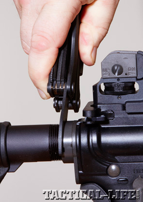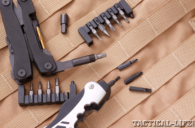 The Gerber (gerbergear.com; 800-950-6161) MP600-ST, the Leatherman (leatherman.com; 800-847-8665) MUT and the Multitasker (multitaskertools.com) Series 2 all share a few common features that we’ve come to expect in a multi-tool: a pliers head, wire cutters (replaceable on the MUT and MP600-ST), a knife blade, and a carbon scraper. That last feature is typically not included on other multi-tools. Most AR platforms feed hot gases directly into the bolt—carbon removal could be considered the bane of the AR. The MP600-ST has one Phillips-head and three different flathead screwdrivers. The MUT and Series 2 have a selection of removable bits. The MP600-ST and Series 2 both have a four-prong AR front-sight adjustment tool. Features shared by the MUT and MP600-ST are a crimping tool and the must-have bottle opener. (The MP600-ST is the only one to include a can opener) The Series 2 also includes a 3/8-inch box wrench (for LaRue accessory mounts), a file, a removable punch and a spanner wrench that fits the castle nuts on M4 stocks. The MUT also has a removable punch, saw blade, hammering surface, cutting hook and bolt override tool. Separate but included with the MUT is a 3/8- and 1/2-inch wrench. The knife blade on all of the tools lock in place to prevent accidents, as does the saw blade on the MUT. In fact, all of the tools on the MP600-ST lock once opened. Nylon belt pouches are included to make sure you can carry these handy tools with you unnoticed until they’re needed for weapons maintenance.