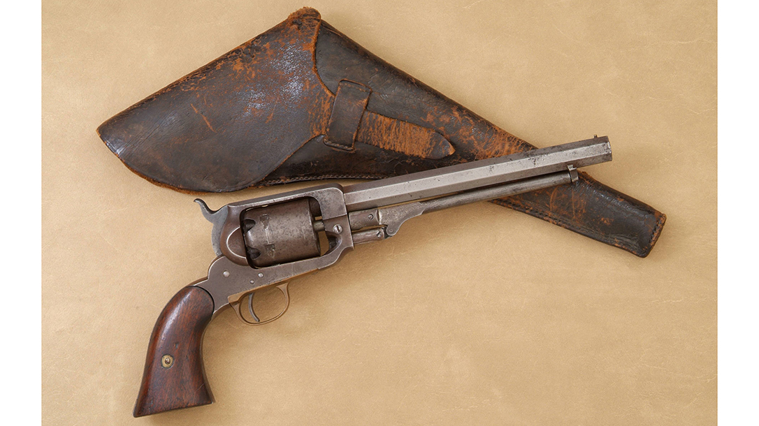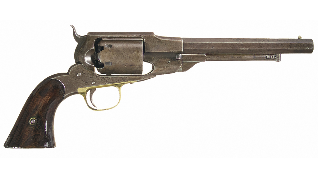 One could say that Whitney’s small-frame pocket pistols were blatant copies of the Remington New Model Police single-action models with 4½-inch barrels. But in fact it was the other way around. Whitney Pocket revolvers were manufactured from the late 1850s to the early 1860s. Meanwhile, the Remington wasn’t introduced until the end of the Civil War. The smaller .31-caliber Whitney pistols were also popular with soldiers. They purchased them as backup guns to be kept in pockets or tucked away for easy retrieval.