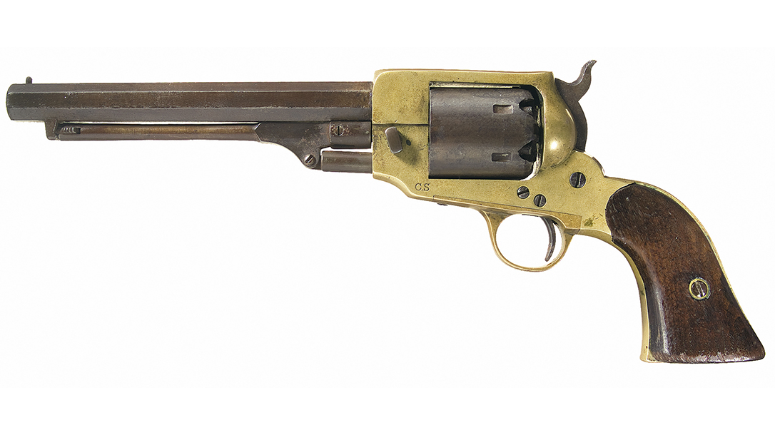 One gun, other than a Remington-Beals, that looked like the Whitney was the brass-framed Spiller & Burr, built in Atlanta and Macon, Georgia, during the Civil War. In fact, it was a blatant copy of the .36-caliber Whitney model designed by Edward Spiller, nephew of Lieutenant Colonel James Henry Burton of the Army, and David Burr, a respected Richmond, Virginia, industrial engineer. They formed Spiller & Burr with a contract to produce 15,000 revolvers for the Confederacy in a period of two and a half years. It set up production in a government-owned factory in Atlanta, but manufacturing proved more difficult than Spiller and Burr expected. You can copy Eli Whitney Jr., but that doesn’t make you Eli Whitney Jr.