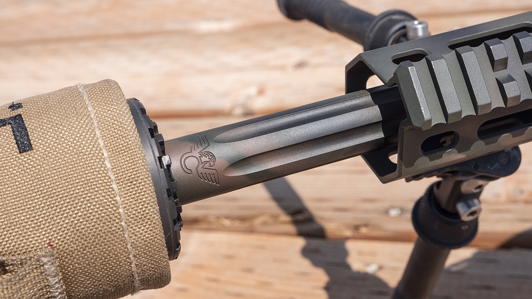 The Tactical Hunter barrel is fluted, 18 inches in length, and threaded 11/16×24 to accommodate a suppressor. Liberty Suppressors’ Goliath is rated for this caliber and was used throughout testing.