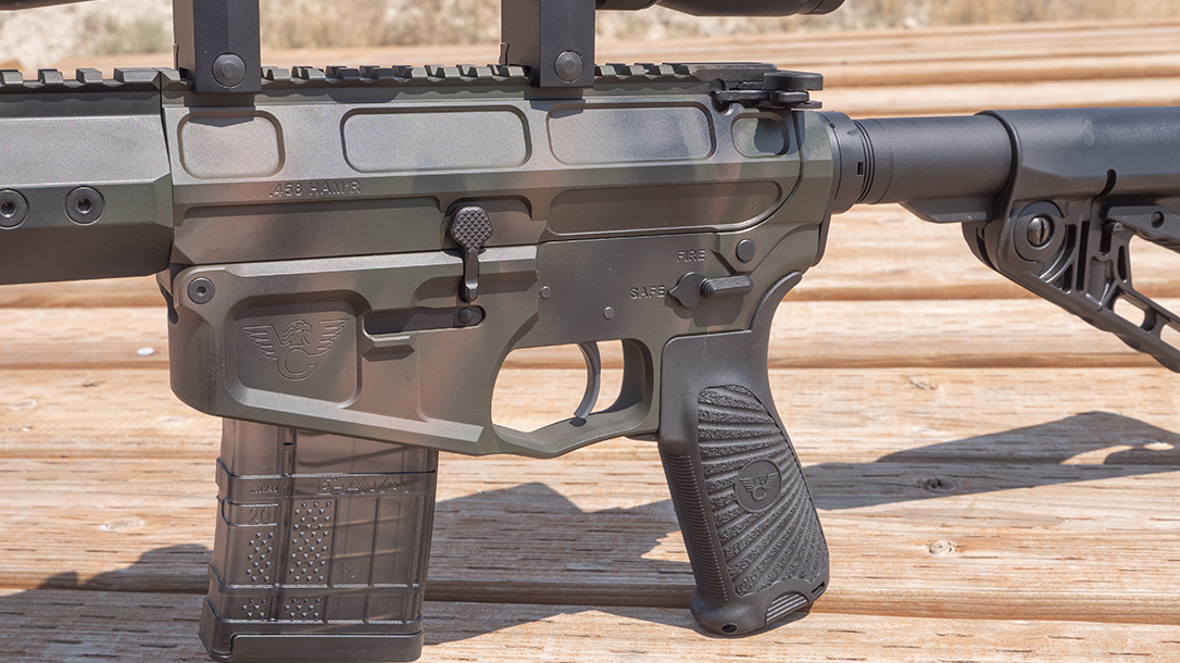 Wilson Combat’s HAM’R uses a custom receiver set that accommodates a modified AR-10 bolt carrier. It mates to a barrel using an AR-10 extension, both of which deal with the increased pressure.