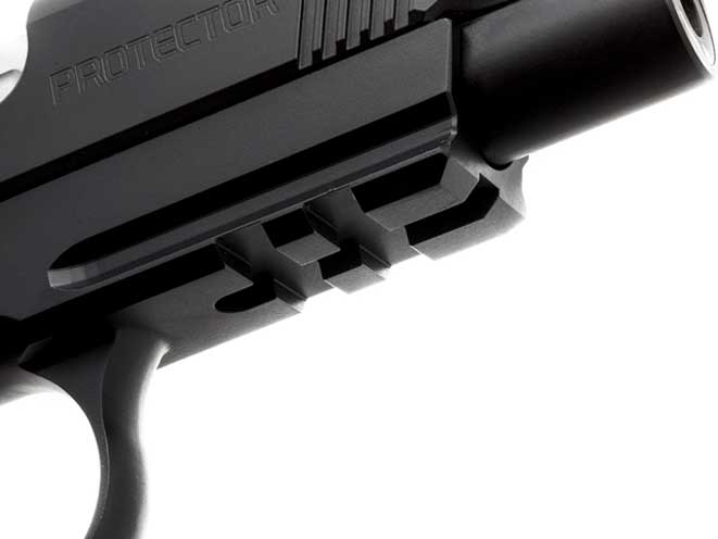 The 2015 Protector features a fluted tactical cone barrel, round butt, one-piece bulletproof magwell and a unique side profile that wears both of Wilson Combat’s signature carry cuts and abbreviated front cocking serrations-which is unique to this model.