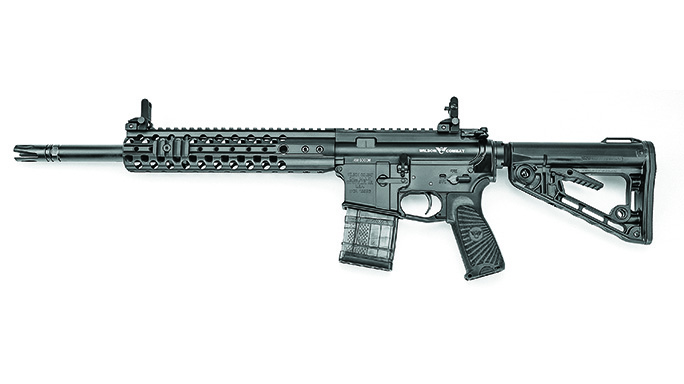 The dedicated lower receivers feature integral, enlarged triggerguards and flared magazine wells for fast reloading. The magazine wells help funnel the skinny 9mm magazines. Also, the AR9 series weapons are designed so the bolt will lock back after the last round is fired. Finally, Wilson guarantees that its AR9s will shoot 1.5-inch, five-shot groups at 50 yards with premium factory ammunition.
