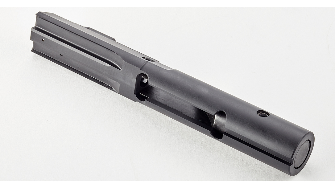 The AR9G is one of two 9mm carbines made by Wilson. The “G” stands for the fact that it accepts Glock magazines, while the “B” model uses Beretta 92 magazines. My sample rifle was one of the very first AR9Gs made. But the design has undergone some changes to improve its functioning. This includes a different two-stage trigger; a heavier bolt carrier and bolt carrier spring; and a magazine well modification to prevent the bolt from locking back prematurely if the shooter presses upward on the magazine while firing. These enhancements underscore Bill Wilson’s commitment to perfecting and improving a design rather than maintaining the status quo.