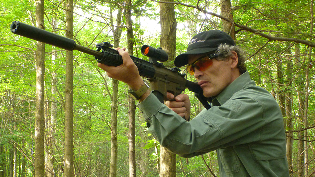 Firing the AR9G with the Ghost-M in its long configuration showed no point-of-impact shift at 50 yards, and the carbine ran flawlessly with minimal backpressure. Naturally, of course, the added length and weight made the lightweight gun muzzle heavy. More importantly, however, the AR9G sounded like a small nail gun with no first-round pop.