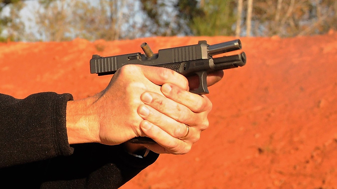 Formal testing consisted of shooting the custom Glock 19 with three of Wilson’s premium personal-defense loads. I started with the 95-grain copper TAC-XP load that is optimized for compact pistols. Despite averaging 1,273 fps, this load was soft shooting and is ideal when over-penetration is a concern. The next load, 115-grain +P TAC-XPs, is my favorite, and I normally load it in my daily-carry guns. Here it averaged 1,092 fps. Finally, the 124-grain +P XTP HPs averaged 1,163 fps. All three loads produced five-shot groups well under 2 inches. I had several three-shot groups that were well under an inch before I ruined things with a flyer. Needless to say, the Wilson Custom Glock 19 is more accurate than I am.