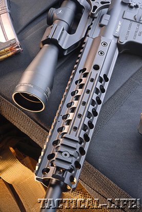 My test sample’s trigger breaks right at 4.25 pounds but is so crisp that it feels much lighter and there is virtually no overtravel. Wilson Combat sells the Tactical Trigger Unit (TTU), a self-contained unit, as an aftermarket accessory that drops right into most ARs. It is a non-adjustable trigger and shooters won’t need to worry about an engagement or overtravel screw backing out and presenting a potentially dangerous situation. My test sample had a single-stage trigger, but customers can also buy a two-stage trigger. Its crispness makes precision shooting with the Wilson Combat Recon Tactical a simple matter.