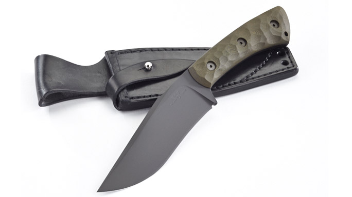 With its Rover’s scalloped Micarta handle stays comfortable even when wet or oily and the handsewn sheath will evoke the fine leathergoods of past generations. The exposed butt can be used as a striking tool or even a caplifter in a pinch.