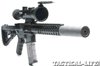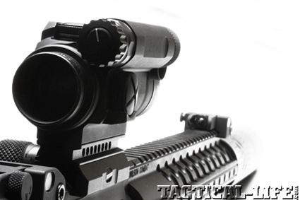 I installed Leupold’s excellent Mk 4 2.5-8x36mm M2 tactical scope with a LaRue SPR mount for the 100-yard accuracy testing. Its TMR reticle and brilliant light-gathering capabilities make the Mk 4 series of scopes the choice of both military and law enforcement units. I have found this particular scope to be extremely versatile, and it has become my go-to glass for AR evaluations.