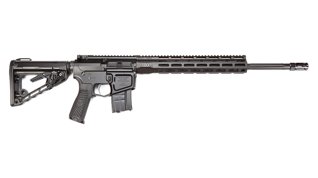 Described by Wilson as an “all-around” AR for tactical training, hunting or general field work, the Recon Tactical in .224 Valkyrie features a 20-inch match-grade, medium-weight, stainless steel tapered barrel with a 1-6.5 Twist. The barrel is available either fluted or non-fluted. In addition, this model comes with a threaded muzzle with Wilson’s Q-Comp compensator; billet upper and lower receivers; Wilson M-LOK handguard; Rogers Super-Stoc buttstock; Bravo Company Gunfighter pistol grip; and an Armor Tuff finish. The rifle has an overall length of 38 inches and weighs seven pounds empty.