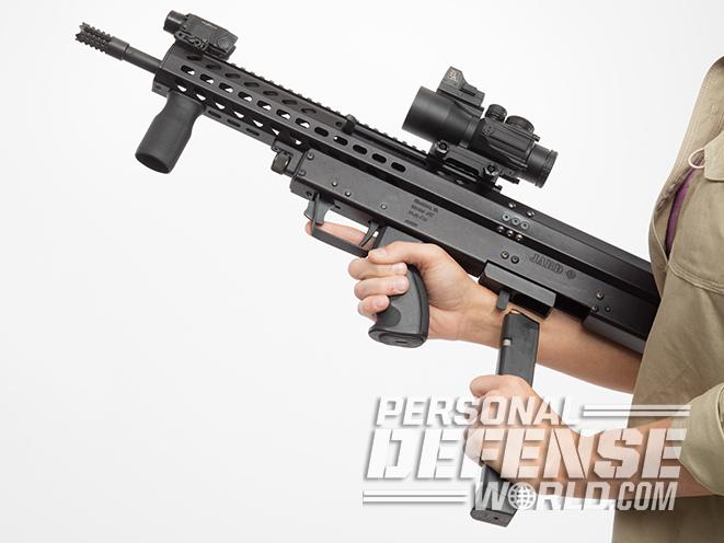 Well known for its AR-15 triggers, JARD ventured into the gun-building business a few years ago. Several AR-related designs fill the company’s catalog, but the J67 takes a detour. The J67 is a 9mm bullpup that accepts Glock magazines. This attribute makes it a notable pistol companion to the Glock-toting pistol horde among the firearms crowd.