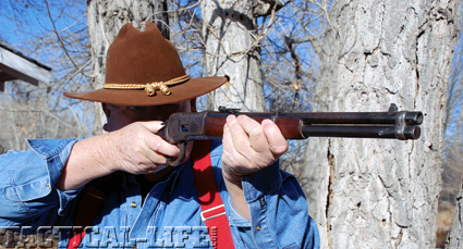With current factory loads delivering 180-grain JSP bullets, I was able to get just over 1100 feet per second (fps) average. The popularity of Cowboy Action Shooting has caused some makers to build low-velocity loads for close-range target work. Black Hills .38-40s produce a little over 800 fps from the Trapper’s short barrel. I found that all loads worked perfectly in the old gun, but accuracy was a sometimes thing. That’s particularly true at distance and it’s probably because the years have not been kind to the bore of this graceful little carbine. Plinking targets at close range is a delight. After uncounted thousands of cycles, the action is as smooth as butter on a cornmeal muffin.