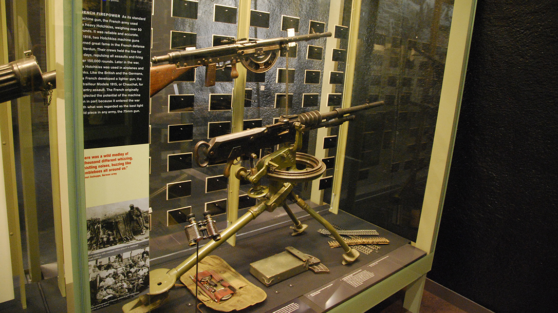 “Machine guns gave the capacity for a huge amount of firepower that could be delivered quickly and accurately,” said Doran Cart, senior curator at the National World War I Museum and Memorial in Kansas City. “The differences between a light machine gun and heavy machine guns were weight and range, but also in placement and use. The machine gun’s recoil during firing was supported by a heavy fixed mount. It was also used in indirect fire and as an anti-aircraft weapon.”
