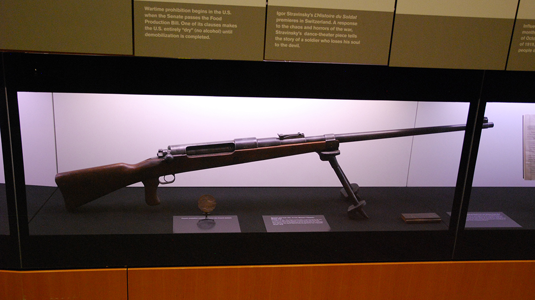 “The Browning Automatic Rifle (B.A.R.) Model 1918 — 30.06 caliber — weighed 16 pounds and it provided a mobile, rapid-fire weapon for infantry in attack,” Cart said. “Many officers reported that ‘these guns received hard usage, being on the front for days at a time, yet they invariably functioned well.’ It was a true American-designed weapon developed for the war. By Nov. 11, 1918, there were 52,238 on hand.”