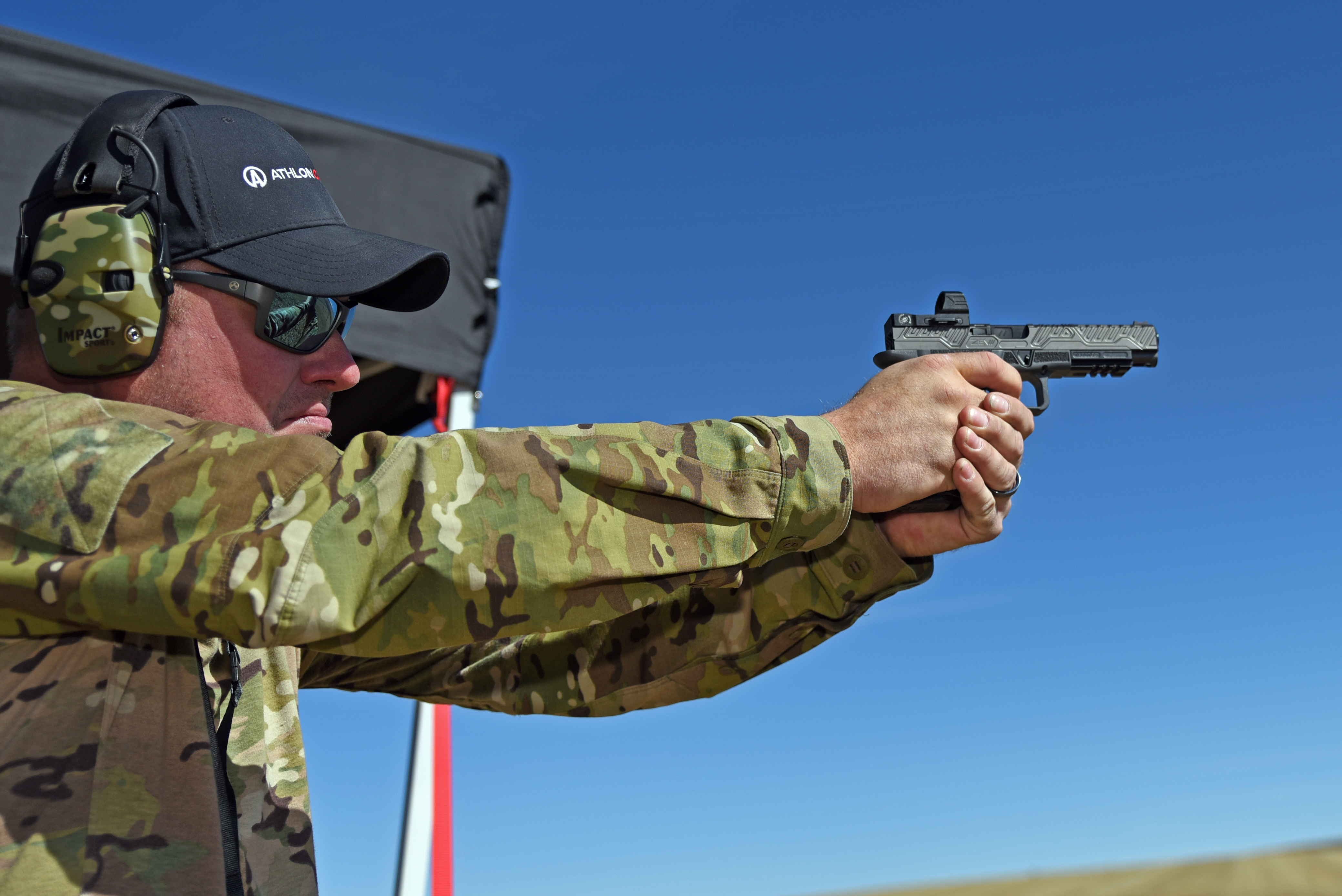 I got a little bit of trigger time at the Athlon Outdoors Rendezvous and loaded up five rounds in the first magazine just to get the feel for it. I fired the first round at a plate of steel about 15 yards out from me. Immediately I was regretting only loading 5 rounds because I didn’t want to stop shooting. The gun performed flawlessly. About 10 yards away was a dueling tree. I loaded up a full magazine this time and flipped the dueling tree twice. I missed 1 out of 17 shots.